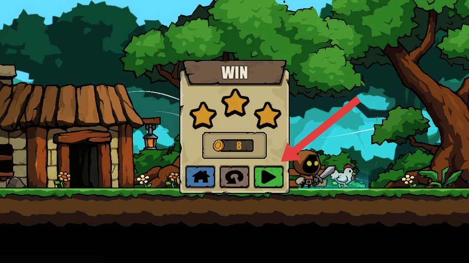 关卡通关后,可领取金币奖励,点击继续按钮即可挑战下一关。