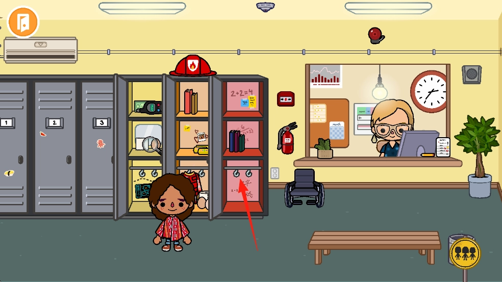 在办公室环境中,玩家操控带有红箭头标识的角色,去翻查储物柜,收集诸如书籍、工具之类的物品,并且和NPC进行互动。