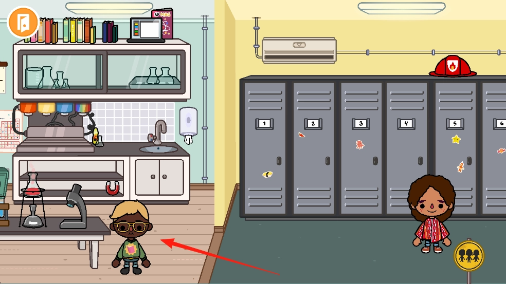 切换到实验室场景,找到那个戴着眼镜的角色(红箭头所指),触发对话任务后就能解锁新区域,进而推动故事线的发展。