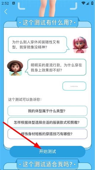 在体型检测介绍页面,点击开始测试,进入体型基础信息填写页面。