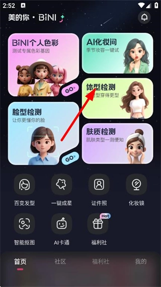 在软件主界面找到“体型检测”按钮并点击,即可进入体型检测介绍页面。