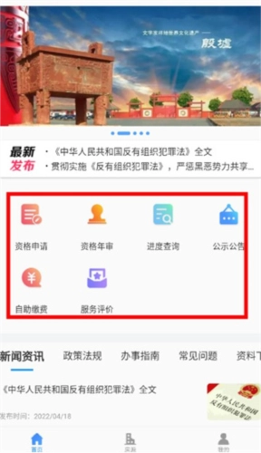 另外,首页还设有资格申请、自助缴费等功能,用户可根据自身需求选择使用这些功能。