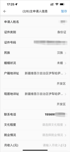 请填写主申请人的相关信息,需依据自身实际状况逐项填写,地址需详细到街道门牌号,完成后点击“下一步”按钮。