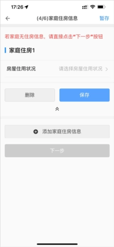 填写家庭住房情况,无自持房产信息直接点击下一步。