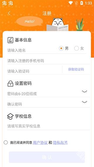 新用户注册需通过手机号完成,需填写基本信息、设置密码并提供学校相关信息。