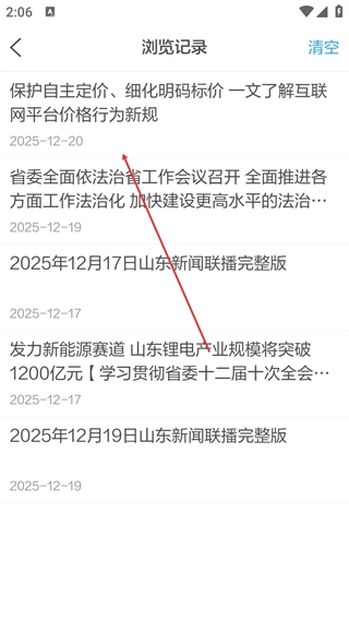 在浏览记录页,即可查看历史浏览的新闻内容。