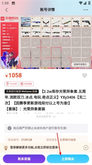 在账号详情页点击“立即购买”按钮,页面会跳转至登录界面。