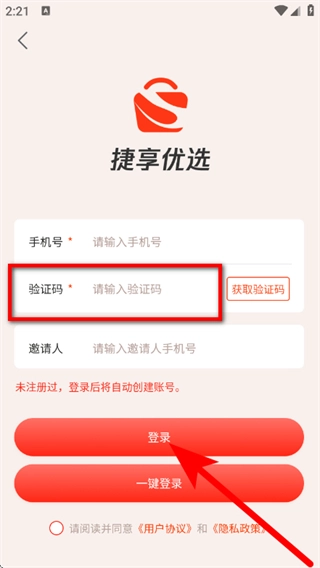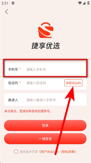 在登录页面,输入手机号,点击获取验证码。
