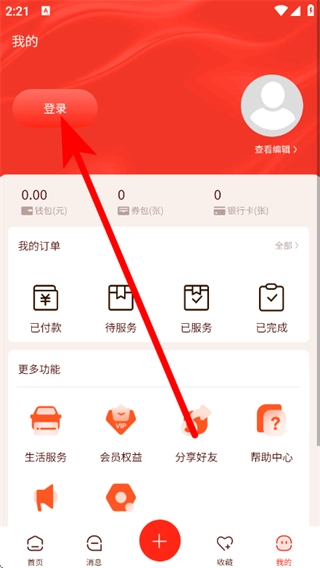 在我的页面,点击上方的登录,进入登录界面。