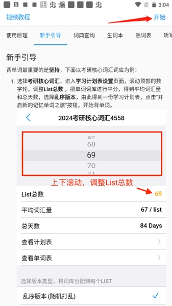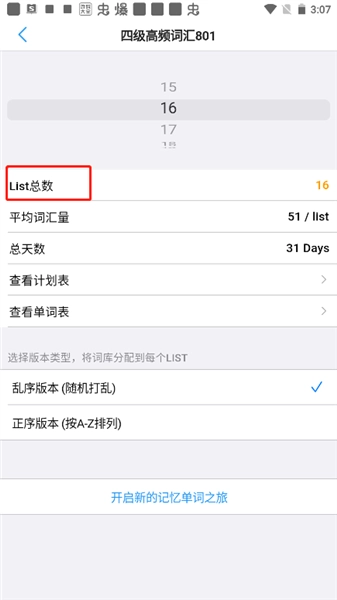 接下来用户可以依据自身情况设置list的总数,也能选择设置乱序或正序版本,之后点击下方的蓝色文字。
