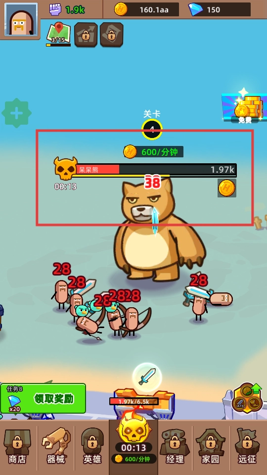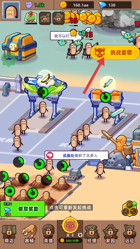 在关卡里攻击首领,保持持续输出伤害,力求快速将其击败以获取奖励。