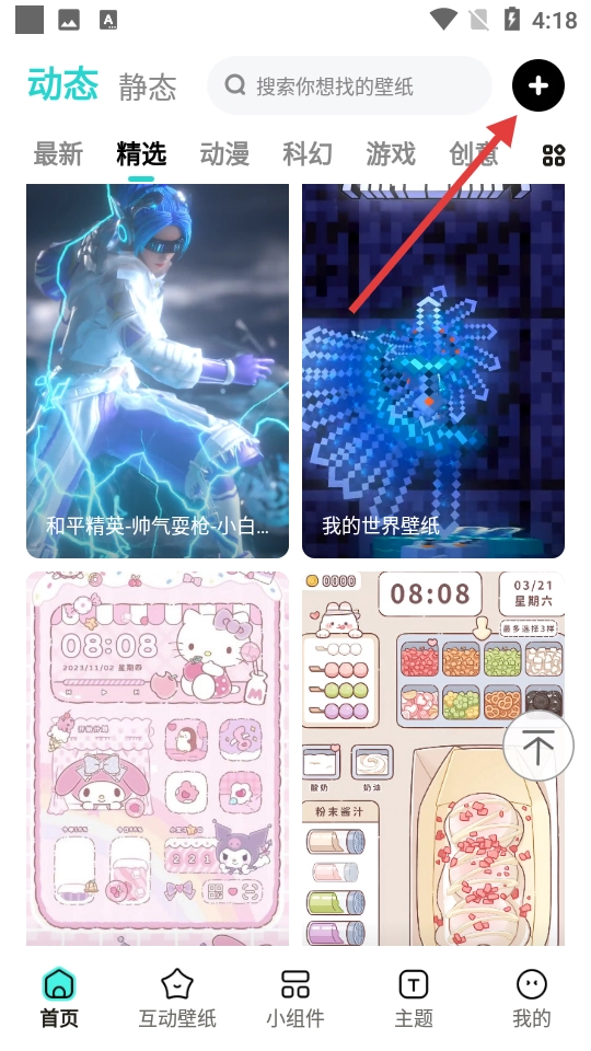 在首页点击右上角的【+】按钮,会弹出制作壁纸的选项菜单。