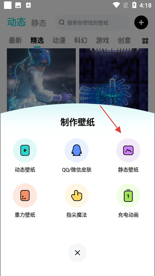 在菜单中选择【静态壁纸】,进入图片选择页面。