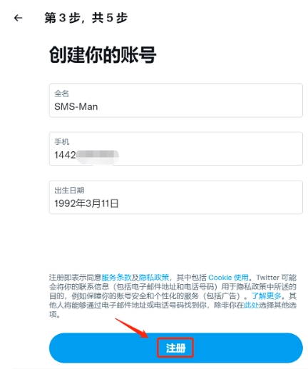 在这里输入自己的手机号码,年龄需要填写成年以上