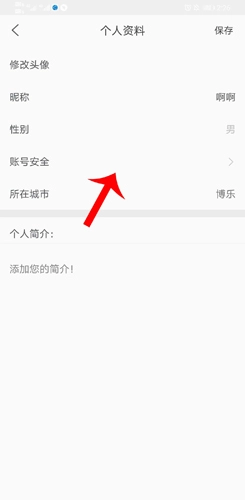 进入个人资料页面后,点击上方的“账号安全”选项。