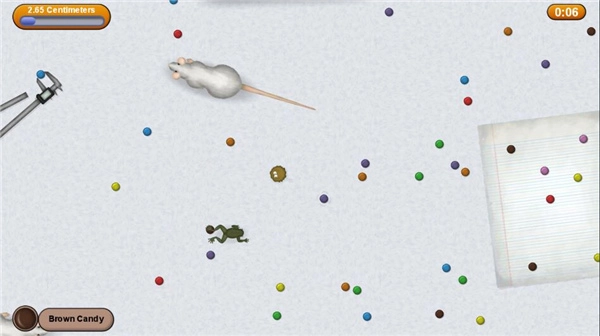 在游戏里会遇到危险的事物,当你体型不够大的时候,碰到比你大的物体就会受到伤害,导致你变小。