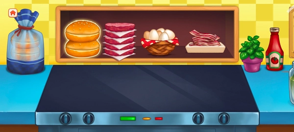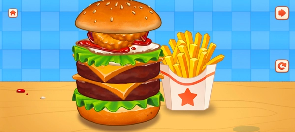 这款游戏完全免费,没有烦人的广告弹窗,也不存在体力限制。你只需尽情制作快餐,尝试烹饪出各种不同口味的汉堡就好!