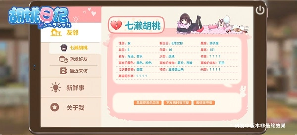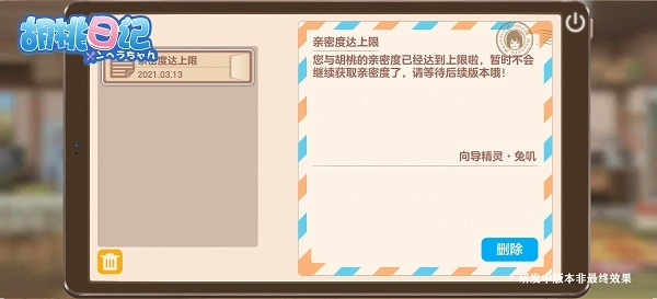 每一级亲密度都对应着一个尚未解锁的新功能呢!亲密度越高,各位桃子能解锁的互动玩法也就越丰富哦!举个例子,亲密度到4级时,就能和胡桃畅快聊天啦;亲密度到6级,就可以给胡桃安排上大家期盼已久的打工卡(把它放进胡桃的包包里,说不定就能打工攒些零花钱哟);等亲密度达到7级,还能在便利店买到小游戏卡带,和胡桃一较高下,看看谁才是真正的游戏高手!