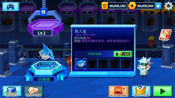 点击你的小怪兽就能为它升级,升级之后可以提高积分加成的比例。
