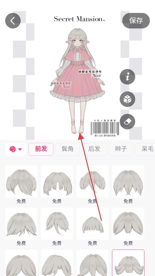 在捏脸界面中,能够挑选前发、鬓角等各类部位的样式,比如通过选择不同的素材样式来打造个性化的角色外观。
