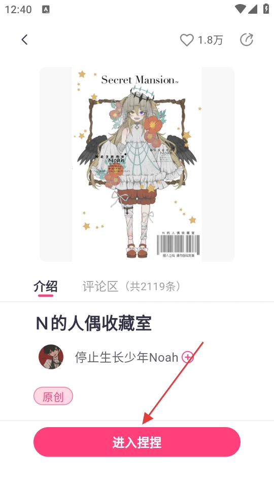 在这个页面里挑选目标创作,比如“N的人偶收藏室”,然后进入它的详情页面。