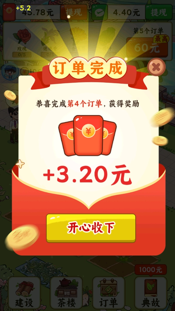当你把订单里要求的植物都收集齐全后,就可以提交这个订单,并且领取到相应的奖励了。