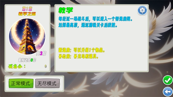 爬塔玩法:挑选一位英雄,在游戏进程里收集资源,挑战随机生成关卡的肉鸽类玩法。