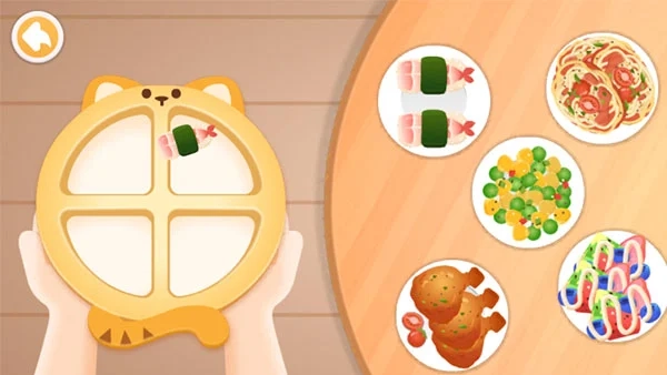 通过旋转桌面、点选食物完成餐食搭配。