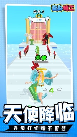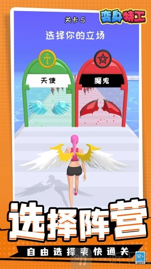 这款游戏最突出的特点在于其“变身系统”,玩家可以在天使与恶魔这两种形态间随意切换,并且每种形态都拥有专属的独特技能。游戏的玩法设计简洁易懂,但整体节奏十分紧凑,这使得跑酷过程增添了更多的策略性与趣味性。
