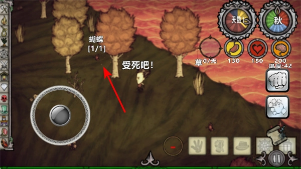 当遇到蝴蝶时可以发起攻击将它击败,击败蝴蝶能够获取资源,攻击的时候要注意掌握时机,保证攻击操作是有效的。