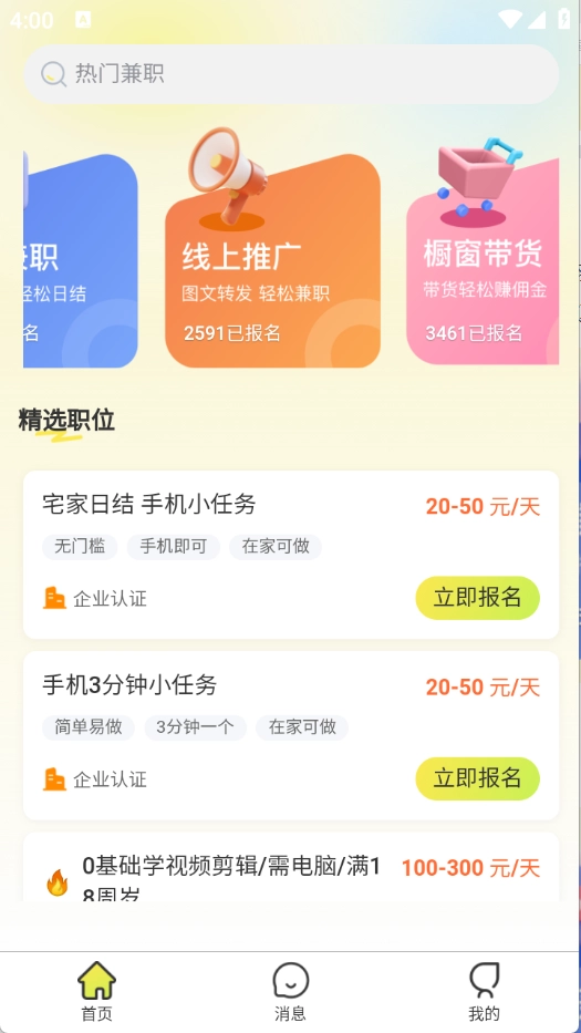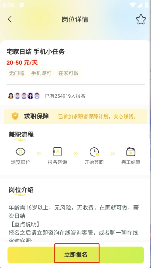 点击喜欢的兼职金进入点击“立即报名”即可。