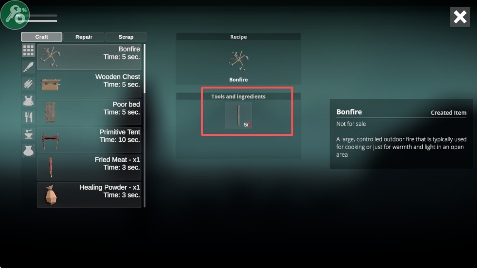 每当夜幕降临,玩家就得返回自己的庇护所。外面一片漆黑会影响我们的视力,而且黑夜的危险程度也会更高。