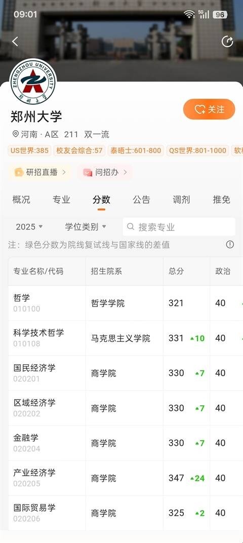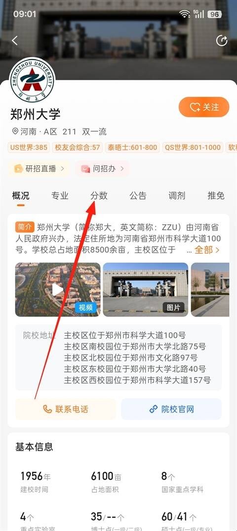 然后就可以查看院校的录取分数了。