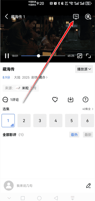 点击投屏图标。