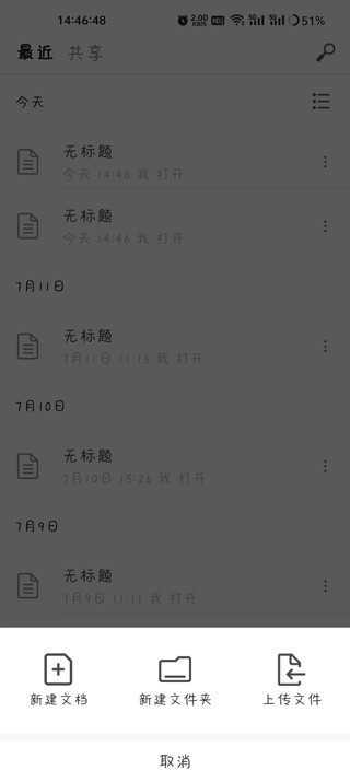 完成的文档会存入最近列表,同步到云端存储,还能导出成Word格式。