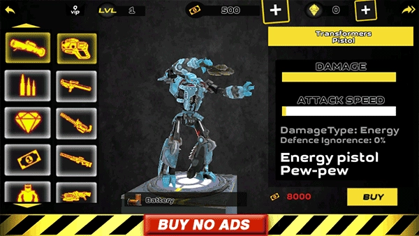 点击左侧购物车标志,可以在商城购买各种武器装备