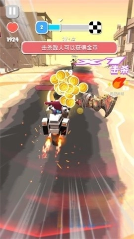 玩家能够通过收集金币与完成任务,购买并升级摩托车的装备,以此提升自身的战斗力。