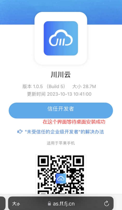 保存二维码,使用自己手机浏览器扫描二维码点击安装。