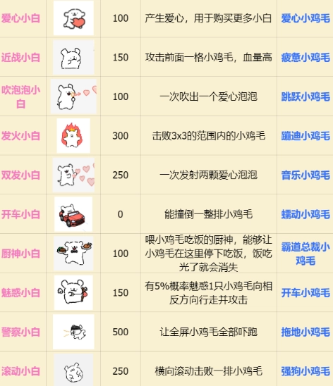 游戏进行时会随机出现爱心道具,玩家要尽可能多地收集这些爱心,以此解锁更多不同形态的小白角色。
