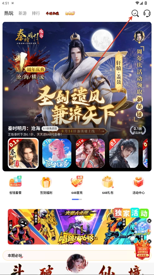或者通过搜索栏输入游戏名称或关键词精准查找。
