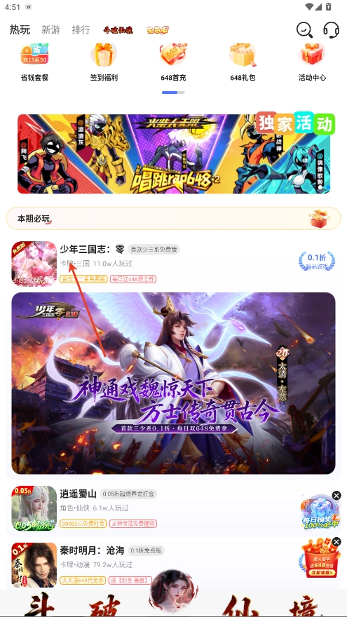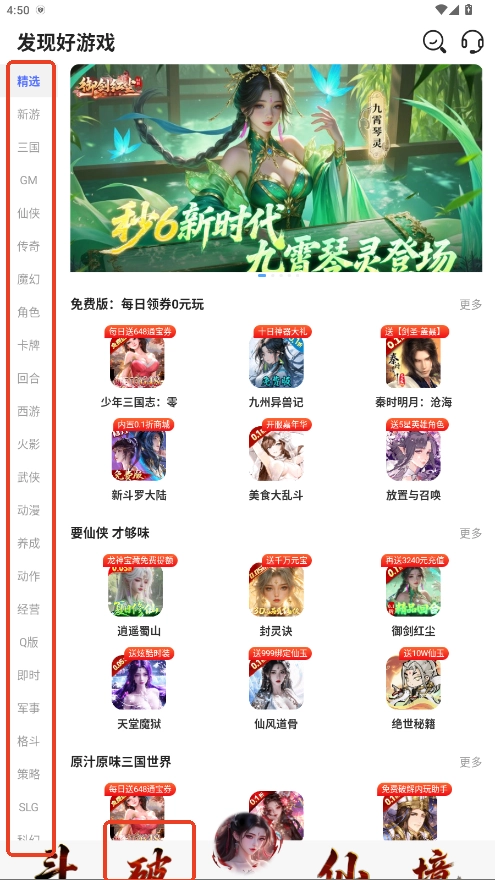 在发现页面,你可以按照角色扮演、休闲益智、竞技对战等不同分类来浏览游戏。