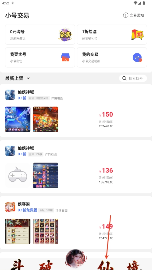 在交易区发布或购买游戏账号、道具及虚拟物品。