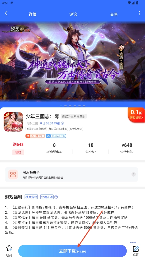 点击游戏封面查看玩法介绍、截图、评分及礼包信息。