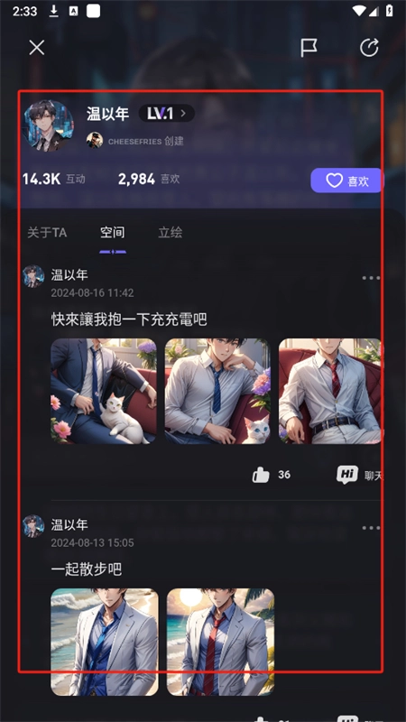 AI角色扮演功能:用户能够和上百种不同类型的角色展开互动,这些角色涉及多种职业、性格与背景,可满足用户多元化的需求。此外,用户还可以自行创建对话对象,设置其性格、喜好等特征,打造出专属的人物模型。