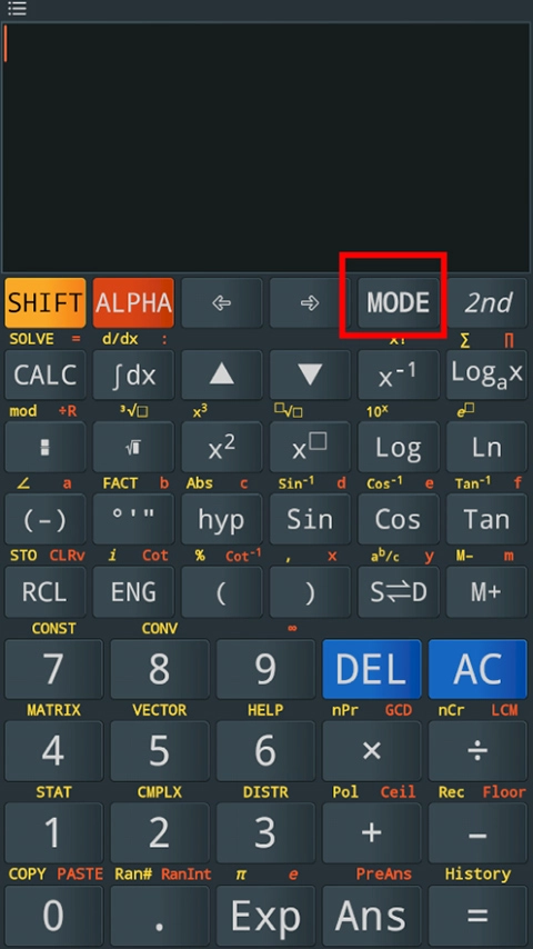 卡西欧计算器如何恢复正常计算模式?打开卡西欧计算器手机版,进入页面后点击MODE键(下图红色方框标注的区域)。