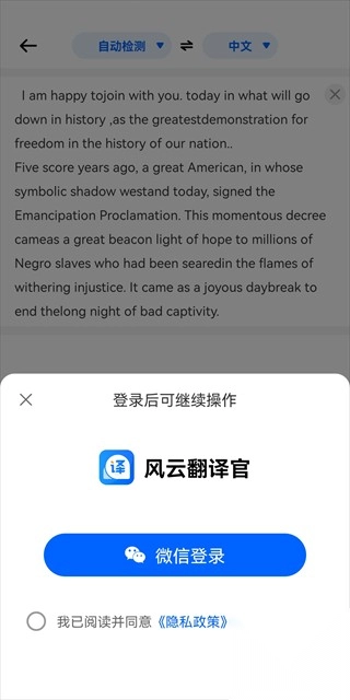 在使用前,用户可登录账号继续后续操作,从而快速完成翻译。