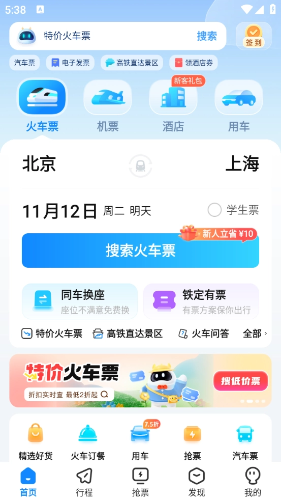 - 多处火车票预订体验优化,等你来发现。