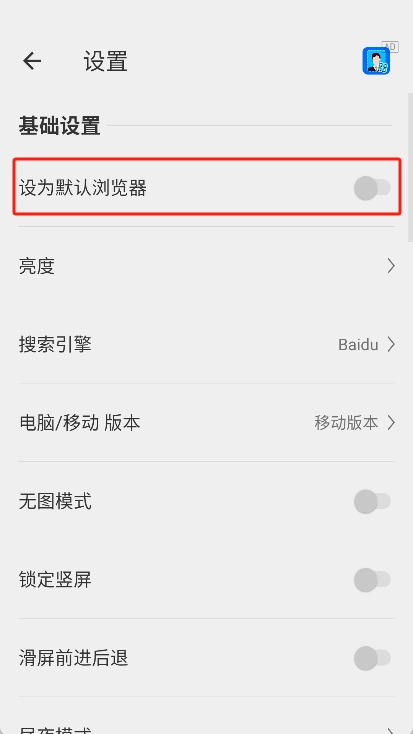 此时回到设置页面,能看到“设为默认浏览器”的选项已经处于开启状态。