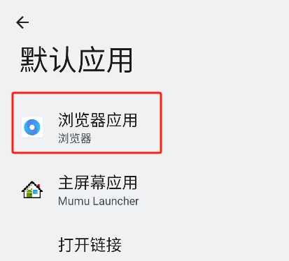 在弹出的页面里点击“浏览器应用”,进入后把web浏览器设为默认浏览器。