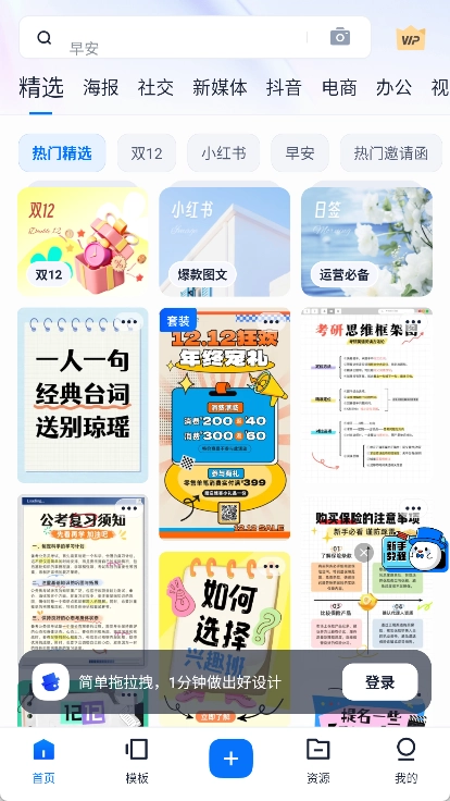 挑选合适的模板,把里面的文字和图片替换成你需要的内容,就能马上完成各种场景下的图片设计工作。